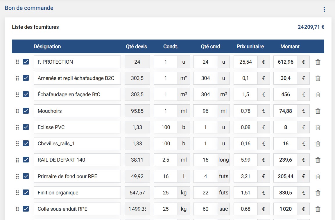 Préparez vos fournitures et génerez un bon de commande sur-mesure pour vos fournisseurs.