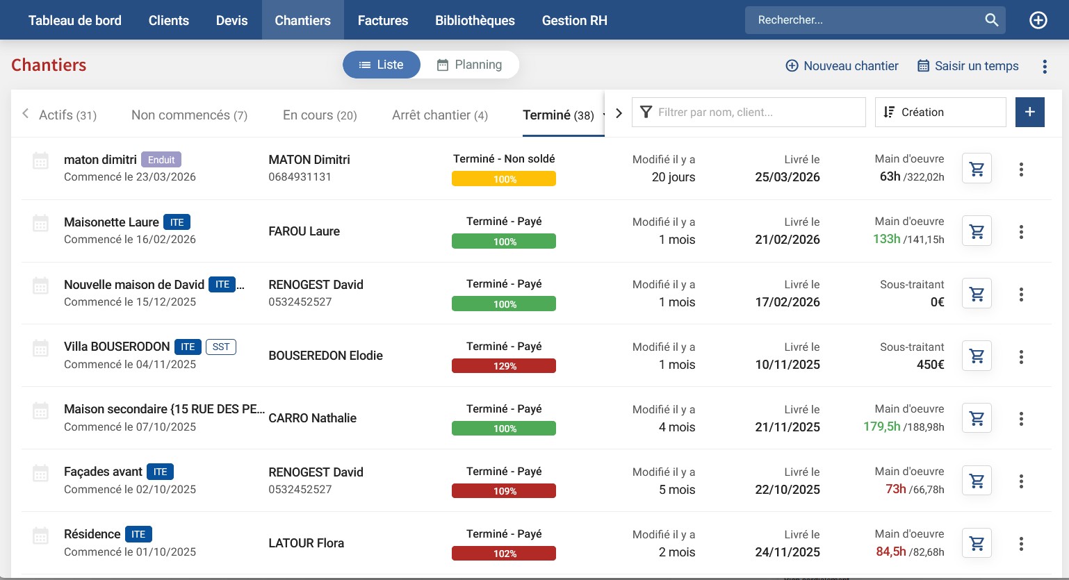 RENOGEST360 est prévu pour toutes les entreprises qui gèrent des chantiers de rénovation, de la plus petite à la plus organisée :
