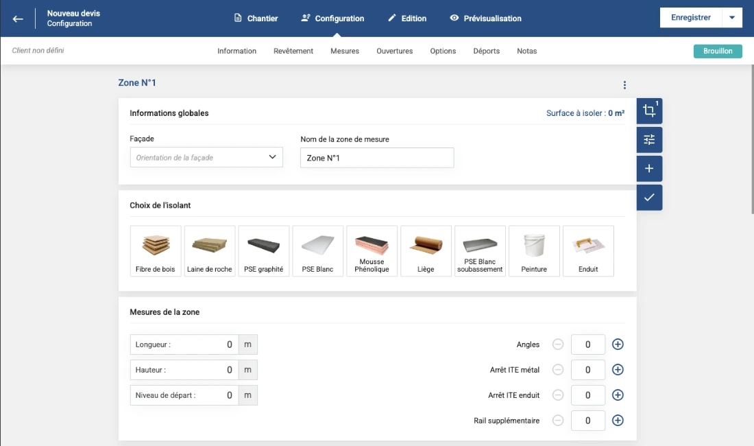Avec RENOGEST360 créez vos devis guidés pour le métier d’ITE en toute simplicité grâce à notre outil. Il vous est également possible de créer librement vos devis.